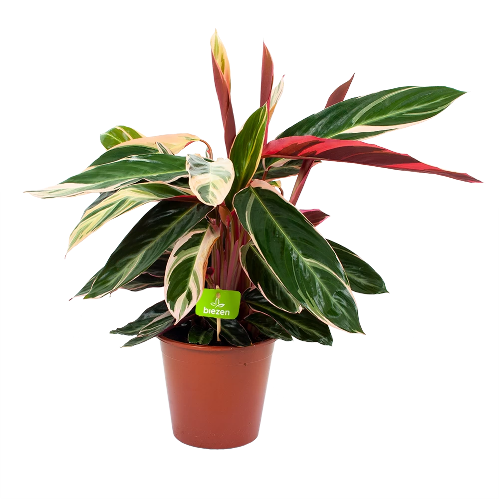 De Calathea Stromante Triostar is zowel mooi als nuttig, omdat het een sterk luchtzuiverende kamerplant is. Wat Calathea’s uniek maakt, is dat zij hun bladeren overdag openvouwen en ‘s avonds weer dicht. Zij hebben hieraan hun bijnaam Living Plant te danken. Plaats de Stromante Triostar op een schaduwrijke plek. Geef de plant regelmatig water en houd de grond tussen de waterbeurten door kort droog.