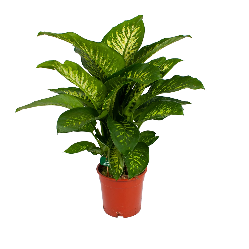 Ben je op zoek naar een grote groene kamerplant? Ga dan voor de Dieffenbachia Green Magic, die opvalt door zijn lange donkergroene bladeren met lichtgroene nerf. Het is een sterk luchtzuiverende plant, maar hij is tegelijkertijd ook giftig: dus pas op met kinderen en huisdieren. Plaats de Dieffenbachia op een lichte plek met indirect zonlicht. Geef de plant regelmatig water en houd de grond vochtig.